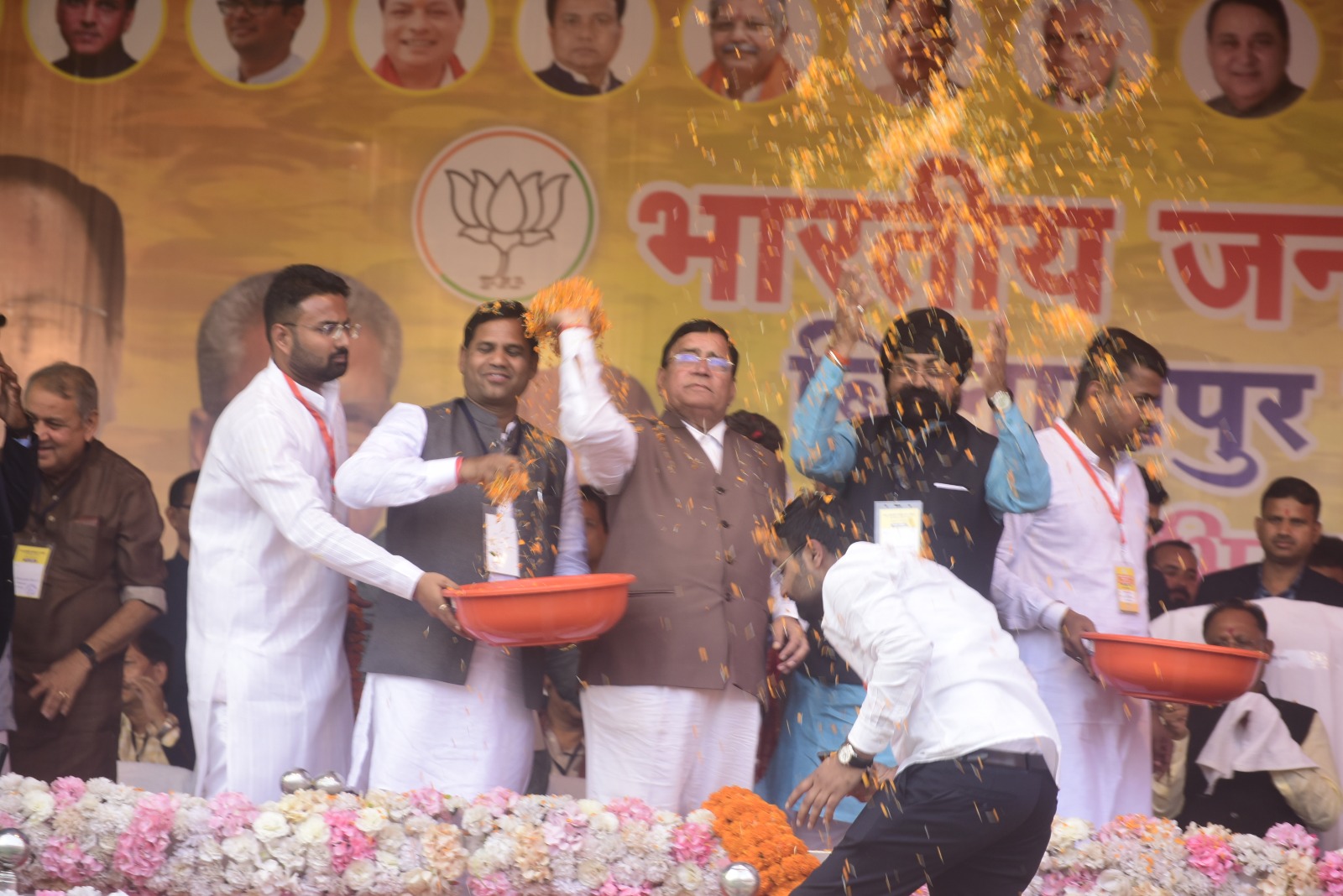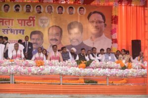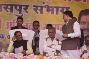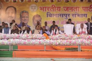 बिलासपुर • भाजपा का संभाग स्तरीय कार्यकर्ता अभिनंदन समारोह पुलिस परेड मैदान बिलासपुर में संपन्न हुआ । समारोह में मुख्यमंत्री विष्णु देव साय,प्रदेश प्रभारी ओम माथुर,भाजपा के प्रदेश अध्यक्ष किरण देव, उपमुख्यमंत्री अरुण साव, विजय शर्मा सहित भाजपा के वरिष्ठ पदाधिकारी उपस्थित थे। सबने भाजपा के सभी जिलों के जिला अध्यक्ष,मंडल अध्यक्ष सहित कार्यकर्ताओं का पुष्प वर्षा से अभिनंदन किया ।इस अवसर पर बिल्हा विधानसभा क्षेत्र के पथरिया मंडल के अंतर्गत विभिन्न ग्रामों के जोगी कांग्रेस व कांग्रेस के लगभग दो दर्जन कार्यकर्ताओं ने भाजपा में प्रवेश किया ।