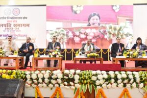 मुख्य अतिथि श्री साव ने अपने उद्बोधन में कहा कि शिक्षा को विश्वस्तरीय बनाने के लिए भारतीय विश्वविद्यालय संघ द्वारा किये जा रहे कार्य प्रशंसनीय है। शिक्षा व संस्कृति के क्षेत्र में संघ के योगदान से शिक्षा में एकरूपता व समानता आ रही है। उन्होेंने कहा कि लार्ड मैकाले की शिक्षा नीति ने हमारे मानसिकता को कमजोर किया है। अब हमें राष्ट्रीय शिक्षा नीति 2020 के अनुरूप विश्वविद्यालयों में शिक्षा की व्यवस्था करनी होगी। हम सभी जानते है कि भारत में विश्वगुरू बनने की क्षमता है। पिछले कुछ वर्षों में पूरी दुनिया में भारत का मान-सम्मान एवं स्वीकार्यता बढ़ी है। भारत को देखने का दुनिया का नजरिया बदला है। वह दिन दूर नहीं, जब भारत फिर से विश्व गुरू कहलाएगा। उन्होंने यह भी कहा कि आज विद्यार्थी तनावग्रस्त एवं अवसादग्रस्त हो रहे है। अनेक अप्रिय घटनाएं हो रही है। इसे रोकने की जरूरत है। इसका समाधान भी राष्ट्रीय शिक्षा नीति 2020 में हैं। उन्होंने छात्रों से आहृवान किया कि छात्र पढ़ाई को तनाव के रूप में न लें। छात्रों को कक्षा में आत्मविश्वास व ऊर्जा का माहौल मिले। छात्र को राष्ट्रभक्त एवं आत्मविश्वास से परिपूर्ण नागरिक बनाने की जिम्मेदारी विश्वविद्यालयों की है।