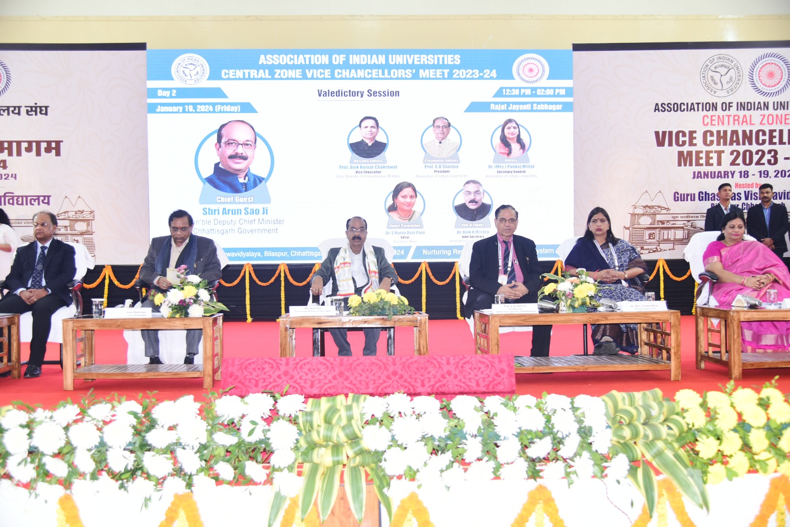समारोह के मुख्य अतिथि श्री तत्पश्चात मंचस्थ अतिथियों को शॉल, श्रीफल से सम्मानित करते हुए स्मृति चिन्ह भेेंट किया गया। अंत में डॉ. आलोक मिश्रा, संयुक्त सचिव, भारतीय विश्वविद्यालय संघ ने आभार प्रदर्शन किया। कार्यक्रम का संचालन डॉ. गरिमा तिवारी, सहायक प्राध्यापक, वानिकी विभाग ने किया। कार्यक्रम में विभिन्न विश्वविद्यालयों के कुलपति, गुरु घासीदास विश्वविद्यालय के अधिष्ठातागण, विभागाध्यक्षगण, शिक्षक एवं छात्र काफी संख्या में उपस्थित रहे।