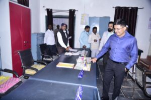 बिलासपुर • कलेक्टर श्री अवनीश शरण ने आज संयुक्त जिला कार्यालय की विभिन्न शाखाओं और नया कंपोजिट बिल्डिंग में संचालित कार्यालयों का आकस्मिक निरीक्षण किया। साढ़े 11 बजे तक अनुपस्थित एक दर्जन कर्मचारियों को शोकॉज नोटिस जारी करते हुए एक दिन का वेतन काटने के निर्देश दिए। एडीएम श्री शिवकुमार बनर्जी भी निरीक्षण में उपस्थित थे।