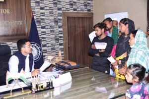 बिलासपुर //कलेक्टर श्री अवनीश शरण ने साप्ताहिक जनदर्शन में बड़ी संख्या में पहुंचे लोगों से मुलाकात कर उनकी समस्याएं सुनी। उन्होंने इत्मीनान से एक-एक फरियादी से मिलकर उनसे आवेदन लिए और इनके निराकरण के लिए संबंधित अधिकारियों को निर्देशित किया। उन्होंने जनदर्शन में पहुंची महिलाओं से चर्चा कर महतारी वंदन योजना की जानकारी दी और लाभ उठाने के लिए 20 तारीख तक आवेदन देने को कहा है। लगभग दो सौ लोग अपनी विभिन्न समस्याओं को लेकर कलेक्टर से मुलाकात की और ज्ञापन सौंपे।