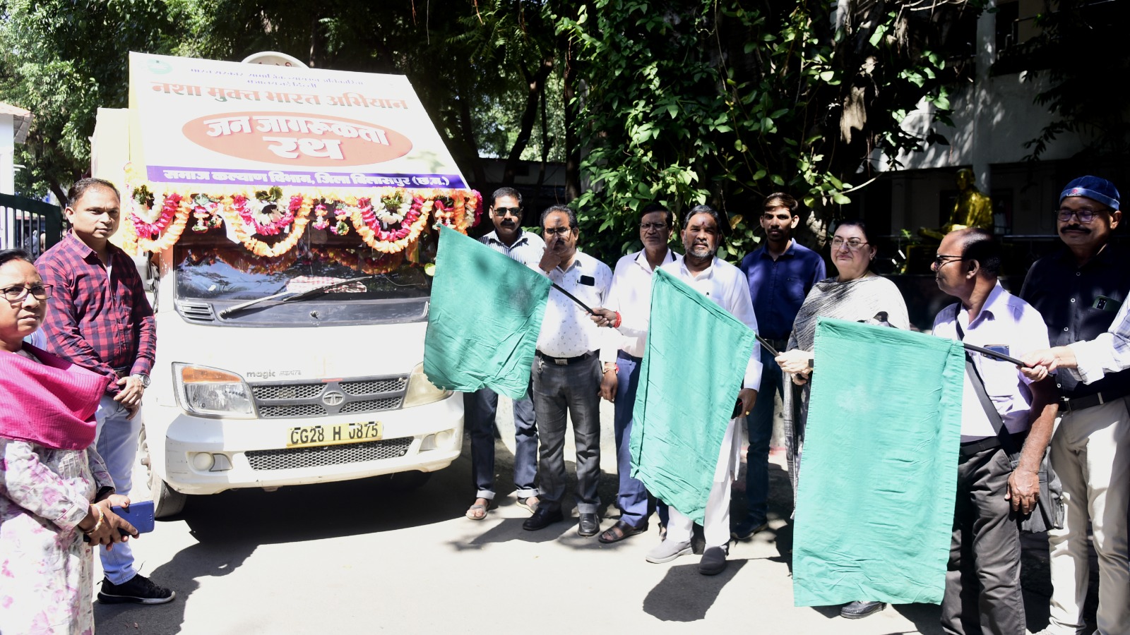 बिलासपुर // भारत शासन के सामाजिक न्याय एवं अधिकारिता मंत्रालय और छत्तीसगढ़ शासन के समाज कल्याण विभाग द्वारा नशा मुक्त भारत अभियान चलाया जा रहा है। इसी कड़ी में जिले में नशे के दुष्परिणामों से लोगों को जागरूक करने जागरूकता रथ को महापौर श्री रामशरण यादव ने जिला कार्यालय परिसर से हरी झंडी दिखाकर रवाना किया।