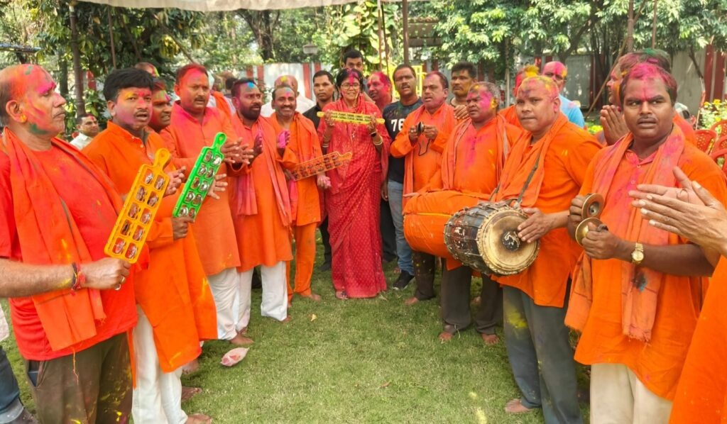 आमतौर पर भगवा रंग को भाजपा से जोड़कर देखा जाता है। लेकिन कांग्रेस सांसद के निवास में होली खेलने पहुंचे लोगों को वहां बड़ी संख्या में भगवा वस्त्रधारी ढोल मंजीरा और छतीसगढ़ी में फ़ाग गाते और थिरकते नजर आये। स्वयं सांसद ज्योत्सना महंत व नेता प्रतिपक्ष डॉ चरणदास महंत ने भगवा कलर से मिलता जुलता ड्रेस पहन रखा था। सांसद और नेता प्रतिपक्ष ने गुलाल से तिलक लगा कर सभी आगन्तुकों का स्वागत किया।