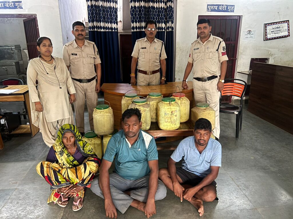 पुलिस टीम ने बजरंग मरावी के घर स्थित बाड़ी से 30 लीटर कच्ची महुआ शराब बरामद किया है। इसके अलावा लिम्हा में पुलिस ने मंगलीन बाई गोंड़ के घर के आँगन से 30 लीटर कच्ची महुआ शराब भी जब्त किया है। पुलिस टीम ने इस दौरान कुल 100 लीटर कच्ची महुआ शराब बरामद किया। महिला समेत तीनों आरोपियों के खिलाफ आबकारी एक्ट के तहत अपराध दर्ज किया। तीनों आरोपियों को न्यायिक रिमाण्ड पर भेजा गया है।