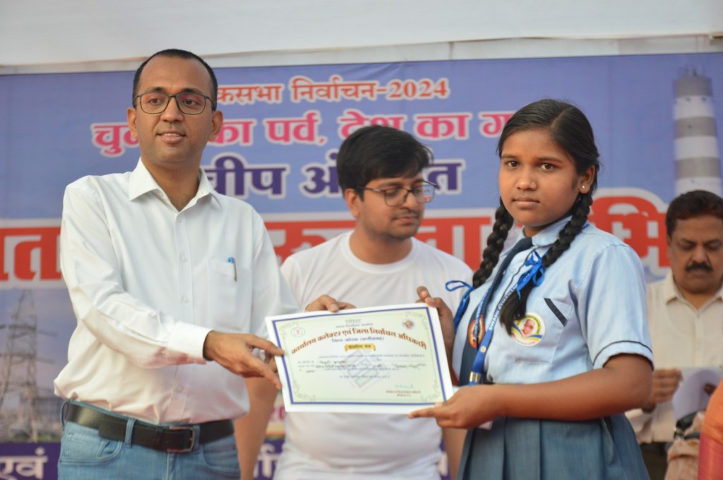 कोरबा // कलेक्टर एवं जिला निर्वाचन अधिकारी अजीत वसंत के निर्देशन में जिले में स्वीप की गतिविधियां लगातार आयोजित की जा रही है। इसी कड़ी में जिला प्रशासन द्वारा सोशल मीडिया के माध्यम से पोस्टर प्रतियोगिता का आयोजन किया गया, जिसमें अदिति जांगड़े, धनेश्वरी राजवाड़े, सुषमा बंजारे, अंशु, मीनू सिदार द्वारा तैयार किए गए आकर्षक पोस्टर को पुरस्कृत किया गया। मतदाता जागरूकता रैली प्रतियोगिता में प्रथम स्थान पर खुशी रजक व द्वितीय प्रिया रजक, मानव श्रृंखला प्रतियोगिता में प्रथम मनीषा पटेल, गरिमा व उजाला, द्वितीय आस्था कुमारी, लक्ष्मी चौहान व कलशी, प्रश्नोत्तरी (क्विज) प्रतियोगिता में प्रथम विवेक पाटनवार भूमिका कंवर, पीयूष मझवार, लोकेश पटेल, लक्ष्मी पटेल, द्वितीय किशन यादव वर्षा पटेल, गणेश कुमार, लकेश्वरी दिवाकर व इंदुप्रभा, रंगोली प्रतियोगिता में सोनिया मंझवार, सुनीता यादव मिष्ठी पटेल, रीना रजक, मुस्कान, मनीषा जायसवाल व नीलम प्रथम, रागिनी कोशले, कृन्या महंत, अंशिका साहू, सुरभि पटेल, मंदाकिनी व तुषार साहू, जया निषाद द्वितीय, चित्रकला/पोस्टर निर्माण प्रतियोगिता प्रथम साक्षी रात्रे, भागवत राजवाड़े, विभुती कुंभकार, योगेन्द्र यादव, अंकिता थवाईत, आरती मंझवार, रोशनी दिवाकर, सुहानी महंत, अस्वनी कुमारी, सुधा कश्यप, द्वितीय प्रिया बंजारे कुसमिता यादव, प्रांजल पटेल, कपिल साहू, सूरज, सोनिया, प्रीति कंवर, चेतन साहू, अंजली कुमारी सुरभि पटेल, वाद विवाद प्रतियोगिता में प्रथम तृप्ति रात्रे, साहीन बेगम, नेहा कंवर, संजना, अखिल दास, द्वितीय मुस्कान, द्रौपती धनवार, मानषी वैष्णव, नीलेश, भूमिका, नुक्कड़ नाटक प्रतियोगिता में प्रथम भूमिका, कृतिका, सौम्या, ओमी, प्राची, हर्ष, नितिन, रिषु, शिवांगी, अक्षापरवीन, ओजस्वीन वस्त्रकार, प्रबलीन, अदिति, द्वितीय करूणा साहू, प्रियंका, खुशी पटेल, वांशिका, तान्या बघेल, एकता राठौर, साक्षी, अर्पिता, निबंध प्रतियोगिता में प्रथम श्रेया राजवाड़े, ओजस्वनी वस्त्रकार, सोनिया पटेल, लवली सोनी, द्वितीयराहूल राजवाड़े, यश महंत, सत्रुपा कुर्रे माहनीश को पुरस्कृत किया गया।