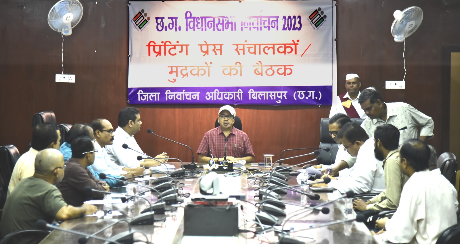 बिलासपुर // कलेक्टर एवं जिला निर्वाचन अधिकारी श्री संजीव कुमार झा ने जिला कार्यालय के सभाकक्ष में मुद्रकों एवं प्रिंटिंग प्रेस संचालकों की बैठक ली। उन्होंने चुनाव प्रचार के दौरान प्रकाशित प्रचार सामग्री के संबंध में निर्वाचन आयोग के दिशा-निर्देशों की जानकारी देते हुए इनका हर हाल में पालन सुनिश्चित करने के निर्देश दिए। उन्होंने कहा कि प्रकाशित सामग्री में प्रकाशक एवं मुद्रक का नाम एवं पता हर हाल में प्रदर्शित किया जाना चाहिए। ऐसी सामग्री का मुद्रण से स्पष्ट मना कर दें जो लोगों के बीच भेदभाव एवं शत्रुता एवं अलगाव को बढ़ावा दें। प्रकाशन उपरांत मुद्रक को घोषणा पत्र एवं प्रकाशित सामग्री की चार प्रति स्थानीय जिला निर्वाचन कार्यालय में जमा करना अनिवार्य होगा। इसके अलावा प्रचार सामग्री की डिलिवरी उसी वाहन में करें जिन्हें राज्य मुख्य निर्वाचन अधिकारी कार्यालय द्वारा अनुमति प्रदान की गई हो। नियमों का उल्लंघन किये जाने पर अधिकतम छह माह की कारावास एवं 2 हजार रूपये की जुर्माना दण्ड स्वरूप भुगतना पड़ेगा। बैठक में उप जिला निर्वाचन अधिकारी श्री महेश शर्मा सहित बड़ी संख्या में प्रिंटर्स एवं प्रेस संचालक उपस्थित थे।