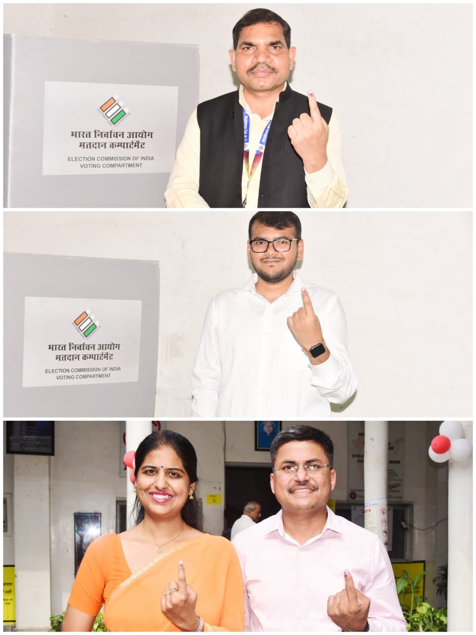 बिलासपुर // कलेक्टर एवं जिला निर्वाचन अधिकारी अवनीश शरण एवं पुलिस अधीक्षक रजनेश सिंह ने सवेरे बिलासपुर विधानसभा क्षेत्र के मिशन उच्चतर माध्यमिक स्कूल स्थित आदर्श मतदान केंद्र क्रमांक 59 में आम लोगों के साथ कतार में लगकर मतदान किया। कलेक्टर ने सपत्नीक मतदान किया। नगर निगम कमिश्नर अमित कुमार और उनकी पत्नी सीएसपी पूजा कुमार ने भी मतदान किया। सीईओ जिला पंचायत आर.पी. चौहान ने भी यहां मतदान किया। कलेक्टर एवं एसपी ने मतदान केंद्र में उपस्थित सुरक्षा बल के जवानों के साथ हाथ मिलाकर पूरी निष्ठा से अपने दायित्वों का निर्वहन करने के लिए प्रोत्साहित किया। साथ ही उन्होंने मतदान केंद्र में उपस्थित सभी अधिकारी-कर्मचारी को भी अपने दायित्वों का पूरी निष्ठा से निर्वहन करने के लिए प्रेरित करते हुए आल द बेस्ट कहा। कलेक्टर एवं एसपी ने मतदान केंद्र में बनाए गए सेल्फी जोन में सेल्फी भी लिया। कलेक्टर ने मतदान केंद्र में उपस्थित सभी मतदाताओं को जागरूकता के साथ मतदान करने के लिए बधाई देते हुए शुभकामनाएं दी। कलेक्टर ने सभी मतदाता से अपने मताधिकार का उपयोग करने की अपील की।