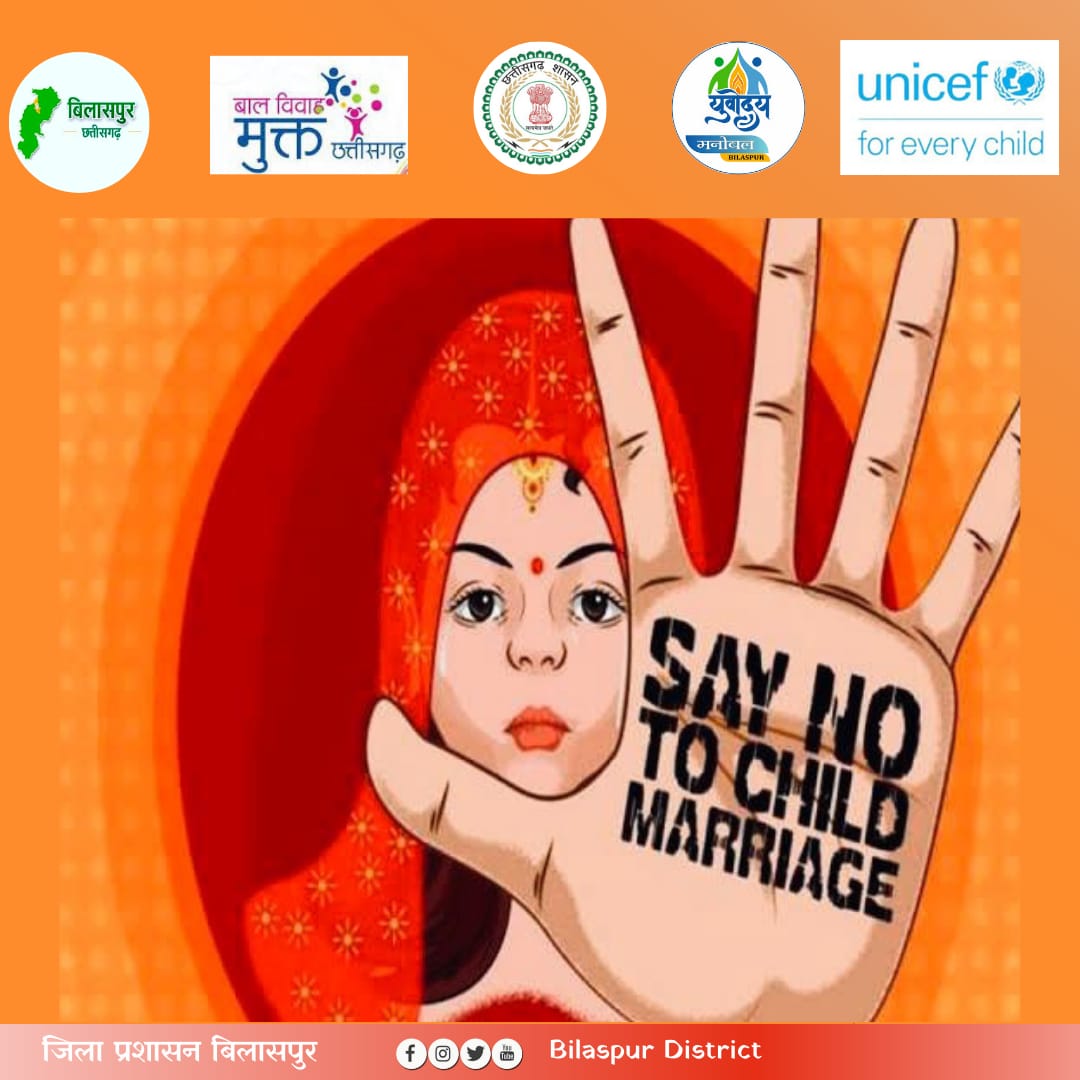 बिलासपुर // कलेक्टर अवनीश शरण ने कल अक्षय तृतीया में होने वाले बाल विवाह की संभावना के मद्देनजर अपील जारी करते हुए बाल विवाह रोकथाम अभियान को सफल बनाने की अपील की है। जिला प्रशासन और यूनिसेफ द्वारा बाल विवाह रोकथाम पखवाड़ा चलाया जा रहा है जिसमे यूनिसेफ के स्वयं सेवकों द्वारा बाल विवाह की संभावना वाले क्षेत्रों में जागरूकता अभियान चलाया जा रहा है ,अभियान की सराहना करते हुए कलेक्टर ने बाल विवाह की सूचना मिलने पर इसकी जानकारी सबंधित विभागों को देने की अपील की है। एसपी श्री रजनेश सिंह ने भी बाल विवाह रोकथाम के लिए अपील करते हुए इसे गंभीर अपराध बताया और इसकी सूचना विभाग को देने की अपील की।