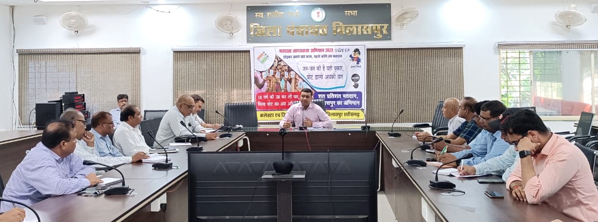बिलासपुर :~ जिला स्वीप कोर समिति की बैठक स्वीप के नोडल अधिकारी और जिला पंचायत सीईओ श्री अजय अग्रवाल ने ली। उन्होंने विधानसभा चुनाव में शत प्रतिशत मतदाताओं की भागीदारी सुनिश्चित करने के लिए मतदाता जागरूकता कार्यक्रम कलेण्डर निर्धारित कर वृहद स्तर पर आयोजित करने के निर्देश समिति के सदस्यों को दिए।