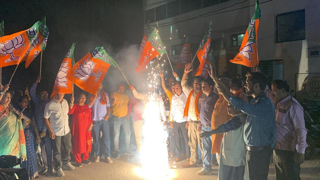 करबला रोड स्थित जिला भाजपा कार्यालय में उत्साह और उमंग को सेलिब्रेट करने के कार्यक्रम किए गए कार्यालय परिसर में एल ई डी स्क्रीन के माध्यम से शपथ ग्रहण समारोह का लाइव प्रसारण किया गया कार्यक्रताओं ने आतिशबाजी की ओर एक दूसरे का मुंह मीठा किया