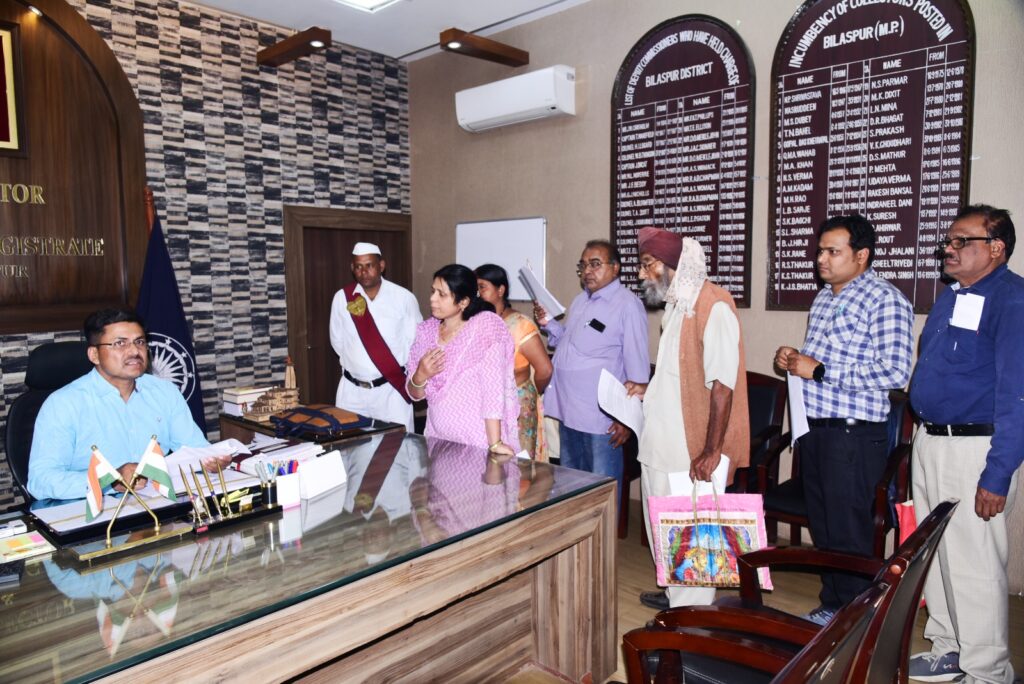 बिलासपुर // तीन माह बाद सोमवार को आम जनता से साप्ताहिक कार्यक्रम जनदर्शन में कलेक्टर रूबरू हुए। चुनावी आचार संहिता समाप्त होेने के बाद एक बार फिर कलेक्टर ने जनता का फरियाद सुना। कलेक्टर अवनीश शरण ने जनदर्शन में दूर-दराज से आये ग्रामीणों, किसानों, बुजुुर्गाे और महिलाओं की समस्याओं को बड़े इत्मीनान से सुना। किसानों से चर्चा कर खेती-किसानी और पर्याप्त खाद-बीज की उपलब्धता के बारे में जानकारी ली। कलेक्टर ने जनदर्शन में ही तत्काल कई समस्याओं का निराकरण भी किया। जनदर्शन में लगभग सौ से अधिक लोगों ने कलेक्टर को आवेदन दिए।