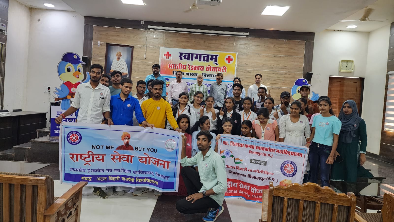 बिलासपुर // भारतीय रेडक्रास सोसायटी बिलासपुर एवं जिला पंचायत बिलासपुर द्वारा प्रार्थना सभाभवन में रक्तदान शिविर और मतदान के प्रति लोगों को जागरूक करने के लिए स्वीप कार्यक्रम आयोजित किया गया। रक्तदान शिविर में जिला पंचायत एवं जनपद पंचायत के स्टाफ द्वारा शिविर के प्रति रूचि दिखाते हुए 21 यूनिट रक्त संग्रहित किया गया। मुख्य चिकित्सा एवं स्वास्थ्य अधिकारी डॉ. राजेश शुक्ला के मुख्य आतिथ्य में शत प्रतिशत मतदान बिलासपुर का अभिमान सूत्र के साथ सभी को मतदान के लिए प्रेरित किया गया। इस कार्यक्रम में 100 से ज्यादा नवीन वोटरों और नववधुओं का सम्मान भी किया गया। कार्यक्रम में श्री मनोज सिन्हा, समन्वयक राष्ट्रीय सेवा योजना, श्री सौरभ सिन्हा, जिला समन्वयक रेडक्रास, ओम पाण्डेय, रामेन्द्र, जनपद पंचायत के सीईओ, अभिजीत, कौशलेन्द्र, रूचि, रीना, सोनिका, अनुराधा, प्रमिल लबरे, आदित्य पाण्डेय सहित बड़ी संख्या में लोग उपस्थित थे।
