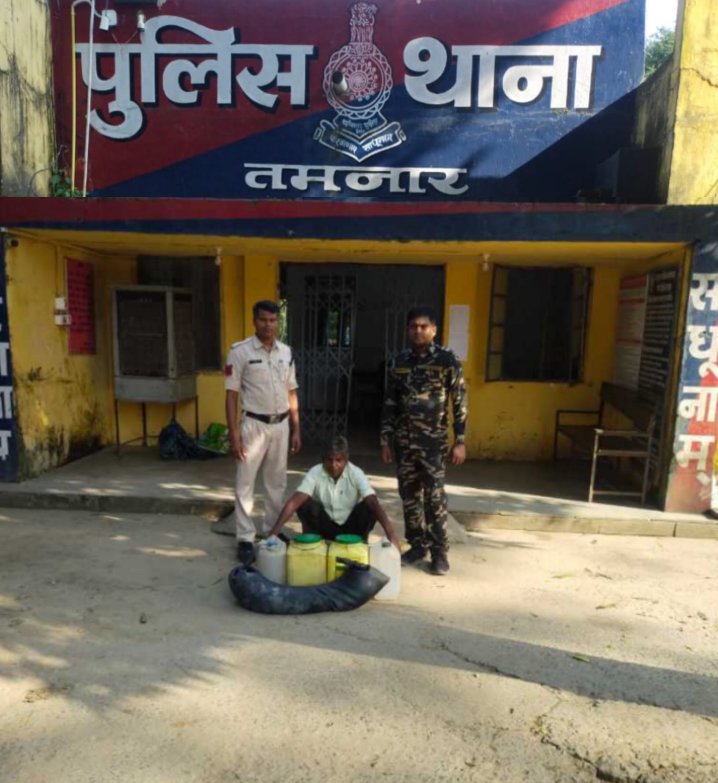 तमनार पुलिस टीम द्वारा गवाहों को साथ लेकर शराब रेड के लिए चैतन राठिया के निवास पर पहुंची । चैतन राठिया द्वारा शराब बिक्री से साफ इंकार किया जिसे पुलिस टीम द्वारा कड़ी पूछताछ करने पर आरोपी चैतन राठिया ने अवैध रूप से शराब बनाना और बिक्री करना स्वीकार किया जिसके कब्जे से शराब बनाने के पात्र तथा 20 और 10 लीटर क्षमता वाले प्लास्टिक डिब्बे और वाहन के टायर ट्यूब में भरकर रखा हुआ कुल 100 लीटर महुआ शराब कीमती ₹20000 का जप्त किया गया है । आरोपी आरोपी चैतन राठिया पिता स्व0 कमल सिंह राठिया उम्र 50 वर्ष सा0 मिलूपारा सीतापुर थाना तमनार पर थाना तमनार में धारा 34(2) 59(क) आबकारी एक्ट के तहत कार्यवाही कर आरोपी को न्यायिक रिमांड पर भेजा गया है ।