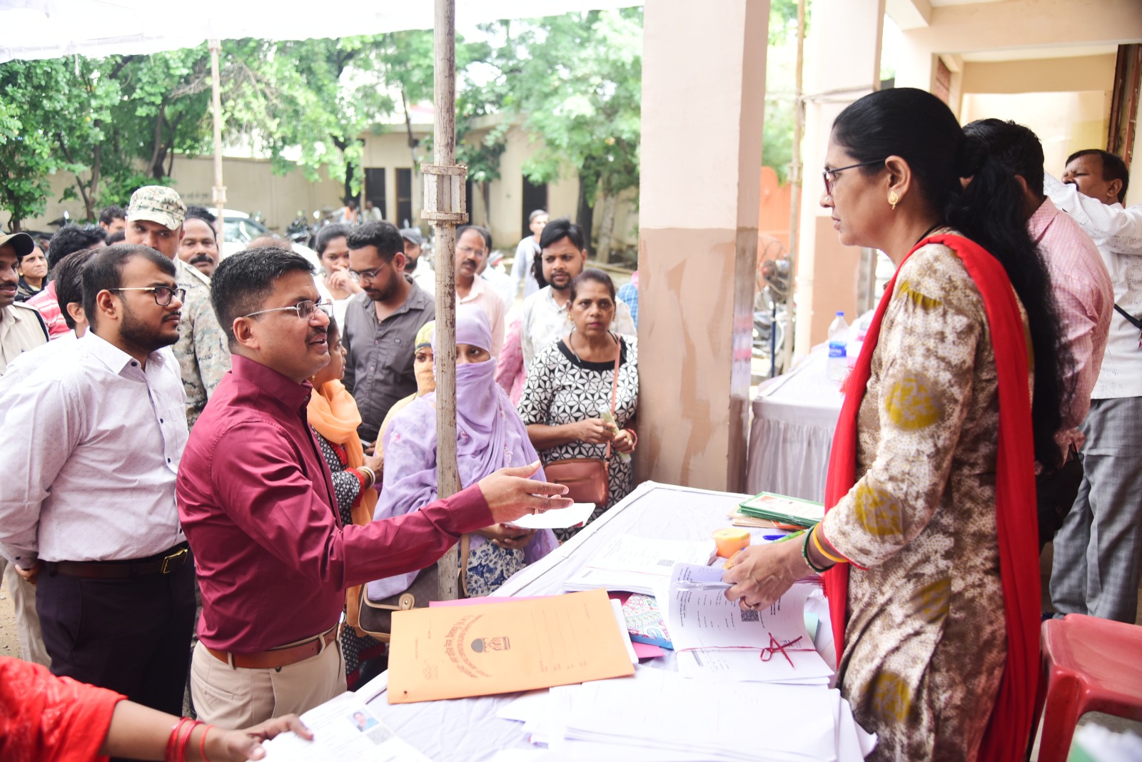 कलेक्टर शरण ने शिविरों में पहुंच रही समस्याओं की प्रकृति एवं उनके निदान के तौर -तरीकों की जानकारी ली। उन्होंने समस्या लेकर पहुंचे कुछ लोगों से चर्चा भी की। एक एक अधिकारियों के टेबल पर पहुंचकर समस्याओं के निदान प्रक्रिया समझी। उन्होंने इन सभी आवेदनों का पंजी में दर्ज करने के निर्देश दिए ताकि फालो-अप किया जा सके। ज्यादातर लोग राशन कार्ड को लेकर आवेदन देने पहुंच रहे हैं। उन्होंने कहा कि यथासंभव आवेदन का मौके पर ही समाधान किया जाये। बड़ी उम्मीद के साथ लोग शिविरों में पहुंचते हैं। यदि कोई आवेदन नियम कायदों में फिट नहीं बैठता तो विनम्रता पूर्वक मार्गदर्शन दें। शिविरों में प्रमुख रूप से राशन कार्ड, सामाजिक सुरक्षा पेंशन, नामांतरण,सम्पति कर, लाईट,राजस्व प्रकरण, आवास, सड़क एवं नाली निर्माण, भवन निर्माण अनुमति, कचरा कलेक्शन आदि से संबंधित समस्याओं के आवेदन लिये जा रहे हैं।