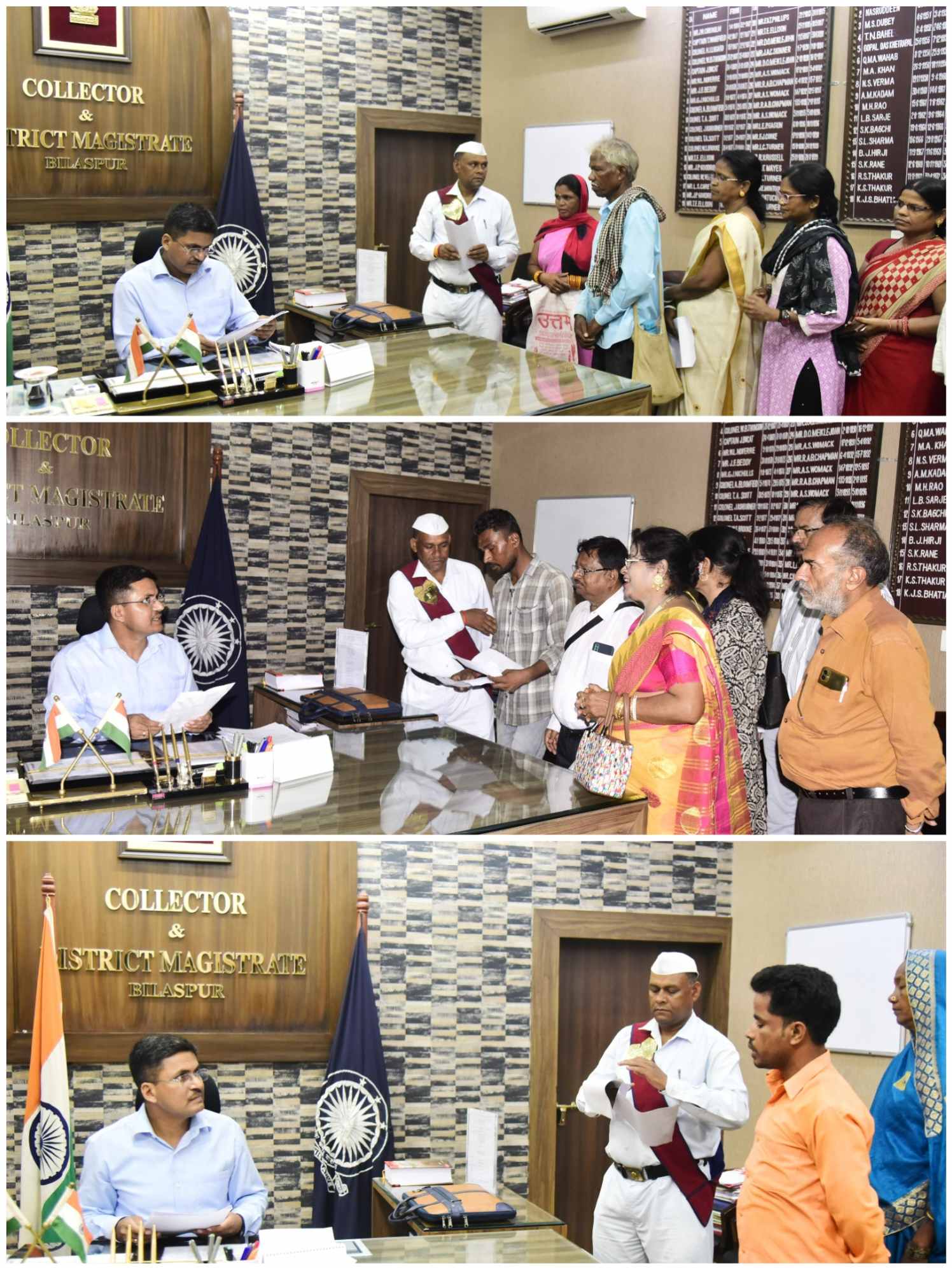 बिलासपुर // कलेक्टर अवनीश शरण ने साप्ताहिक जनदर्शन में दूर-दराज से आए ग्रामीणों, किसानों, मजदूरों की समस्याएं बड़े इत्मीनान से सुनी और संबंधित अधिकारियों को जल्द निराकरण के निर्देश दिए। कलेक्टर से लगभग 200 लोगों ने मुलाकात कर निजी और सामुदायिक मांग और समस्याओं से संबंधित आवेदन दिए। जनदर्शन में कलेक्टर ने किसानों से खाद, बीज उपलब्धता की जानकारी ली। तत्काल निराकृत होने वाले प्रकरणों को मौके पर ही समाधान किया। कलेक्टर ने कुछ आवेदनों का स्वयं ही फोटो लेकर संबंधित अधिकारियों को वाट्सअप पर भेजते हुए जल्द निराकरण के निर्देश दिए।