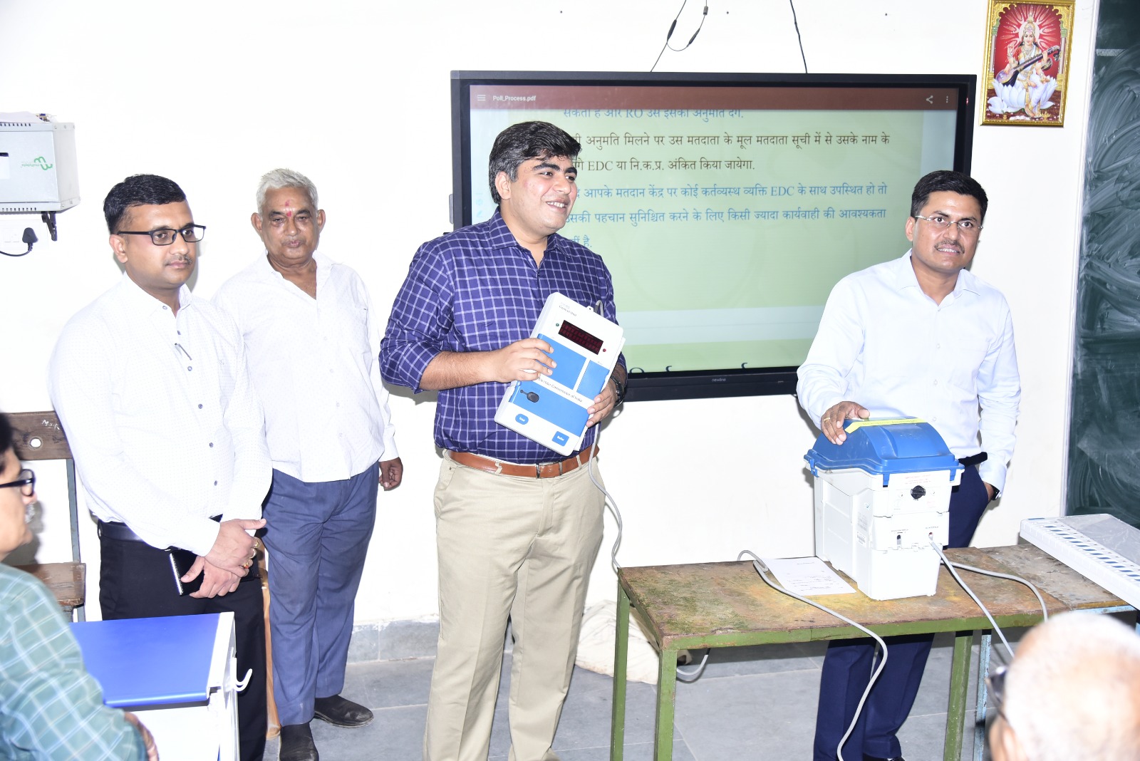 उल्लेखनीय है कि जिले में 8 हजार 200 से ज्यादा प्रशिक्षणार्थियों को प्रथम चरण का प्रशिक्षण दिया जा रहा है। प्रशिक्षण में मास्टर ट्रेनर द्वारा मतदान सामग्री ईव्हीएम, मतदाता सूची, सीलिंग एवं अन्य सामग्री जैसे कि मतदाता रजिस्टर, मतदाता पर्जी, एड्रेस टैग, अमिट स्याही, मॉक पोल आदि के संबंध में जानकारी दी गई। प्रशिक्षणार्थियों को मतदान पूर्व की तैयारियां, ईव्हीएम एवं व्हीव्हीपेट को सील करना, मतदान प्रारंभ करना, डाकमत पत्र, निर्वाचन कर्तव्य प्रमाण पत्र, निशक्तः मतदाताओं द्वारा मंताकन, अमिट स्याही लगाना, मतदाता के हस्ताक्षर जैसी प्रक्रियाओं पर विस्तार से जानकारी दी गई। प्रशिक्षण में मास्टर ट्रेनरों ने बताया कि व्हीव्हीपेट, कंट्रोल एवं ईव्हीएम के सभी तार स्पष्ट रूप से दिखने चाहिए इसमें पूरी पारदर्शिता होनी चाहिए। कहीं से भी छुपा होना नहीं चाहिए। प्रशिक्षण में पीठासीन अधिकारी, मतदान अधिकारी क्रमांक 1, 2, 3 के कर्तव्यों के बारे में भी प्रकाश डाला गया।