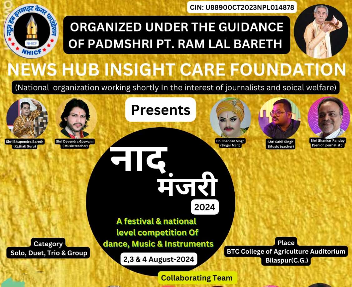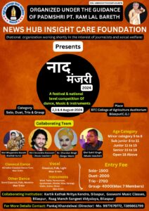 इस प्रतियोगिता का आयोजन न्यूज़ हब इनसाइट केयर फाउंडेशन(NHICF) के द्वारा पद्मश्री राम लाल बरेठ के मार्गदर्शन में कोनी रोड स्थित कृषि महाविद्यालय के ऑडिटोरियम में किया जा रहा है। प्रतियोगिता का मुख्य उद्देश्य युवा प्रतिभाओं को प्रोत्साहित करना और भारतीय संगीत की समृद्ध धरोहर को आगे बढ़ाना है।