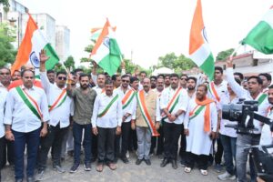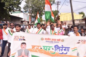 बिलासपुर // हर घर तिरंगा यात्रा अभियान के अंतर्गत विधानसभा बेलतरा में सरस्वती शिशु मंदिर राजकिशोर नगर से तिरंगा यात्रा निकाली गई बेलतरा विधायक सुशांत शुक्ला के नेतृत्व में स्काउट गाइड,राष्ट्रीय सेवा योजना, वन्देमातरम संस्था,राष्ट्रीय स्वयं सेवक संघ के स्वयं सेवक एवम भाजपा के विभिन्न मोर्चा के सदस्यों ने बड़ी संख्या में शोभायात्रा में भाग लिए हाथों में तिरंगा झण्डा फहराते हुए एक ड्रेस कोड के साथ रैली सरस्वती स्कूल से निकल कर शक्ति चौक राजकिशोर नगर हनुमान चौक अपोलो हॉस्पिटल रोड, भारत माता चौक अमरैया चौक शनिचरी रपटा चौक रामायण चौक चांटीडीह अशोक नगर चौक होते हुए सरस्वती शिशु मंदिर अशोक नगर में लगभग सात किलोमीटर नौ वार्डो की परिक्रमा करते हुए पहुंची यात्रा को संबोधित करते हुए डिप्टी सीएम अरुण साव ने कहा कि देश के प्रधानमंत्री नरेंद्र मोदी के आव्हान पर पूरे देश में तिरंगा यात्रा निकाली जा रही है यह तिरंगा यात्रा देश के उन शहीदों को समर्पित है जिन्होंने देश की खातिर अपनी जवानी और जीवन कुर्बान कर दिया यह आजादी भारत माता के सपूतों ने अपना सर्वस्व न्यौछावर कर हमे दी है हमे याद रखना चाहिए कि कितनी माताओं और बहनों ने आजादी के खातिर अपना सुहाग को न्योछावर कर दिया आज उनके बलिदानों को त्याग और तपस्या को याद करने का समय है हमारे भीतर देशभक्ति का जज्बा पैदा हो इसी सोच को लेकर हर घर तिरंगा घर घर तिरंगा अभियान का सूत्रपात किया है विधायक सुशांत शुक्ला ने आभार ज्ञापित करते हुए कहा कि यह हम सभी के लिए सौभाग्य का विषय है कि हम आजाद भारत में जन्म लिए गुलामी की विभीषिकाओं को कभी हमने महसूस नहीं किया आज हम स्वतंत्रता का अमृतकाल वर्ष में देश को एक नई बुलंदियों को छूता हुआ देख रहे हैं प्रधानमंत्री नरेंद्र मोदी का समूचे देश से आव्हान है कि देश के हर घर में आजादी का अमृत महोत्सव मनाया जाए इस अवसर पर उमेश गौरहा विजयघर दीवान, तिलक साहू, अवधेश अग्रवाल, विक्रम सिंह, निखिल केशरवानी, धनंजय त्रिपाठी, लक्ष्मी कश्यप, किशोर बंजारे, दारा सिंह, जीतू साहू, अनमोल झा, ऋषभ चतुर्वेदी, ओमकार पटेल, ओमप्रकाश पांडे, गंगा साहू, संतोष दुबे, अनिल पांडे, शैलु गोरख, राजेंद्र अग्रहरी, सहित भारी संख्या में कार्यकर्ता एवम सामाजिक संगठन के लोग उपस्थित थे।