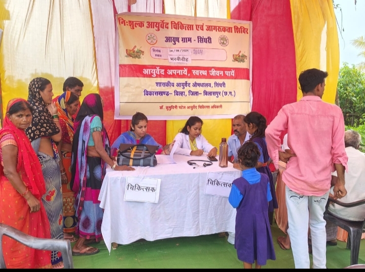 बिलासपुर // आयुष संचालक इफ्फत आरा के निर्देश और जिला आयुष अधिकारी डॉ यशपाल सिंह ध्रुव के मार्गदर्शन में बिल्हा विकास खण्ड के आयुष ग्राम सिंघरी के अंतर्गत ग्राम भरवीडीह में त्रैमासिक आयुष स्वास्थ्य शिविर का आयोजन किया गया। मेले का शुभारंभ सरपंच महेश्वरी कश्यप ने भगवान धनवंतरी की पूजा अर्चना कर किया। शिविर में 254 मरीजों का निःशुल्क इलाज व दवा वितरण किया गया। रोगप्रतिरोधक क्षमता बढ़ाने काढ़ा भी पिलाया गया। बीपी, शुगर, हिमोग्लोबिन की जॉच की गई।