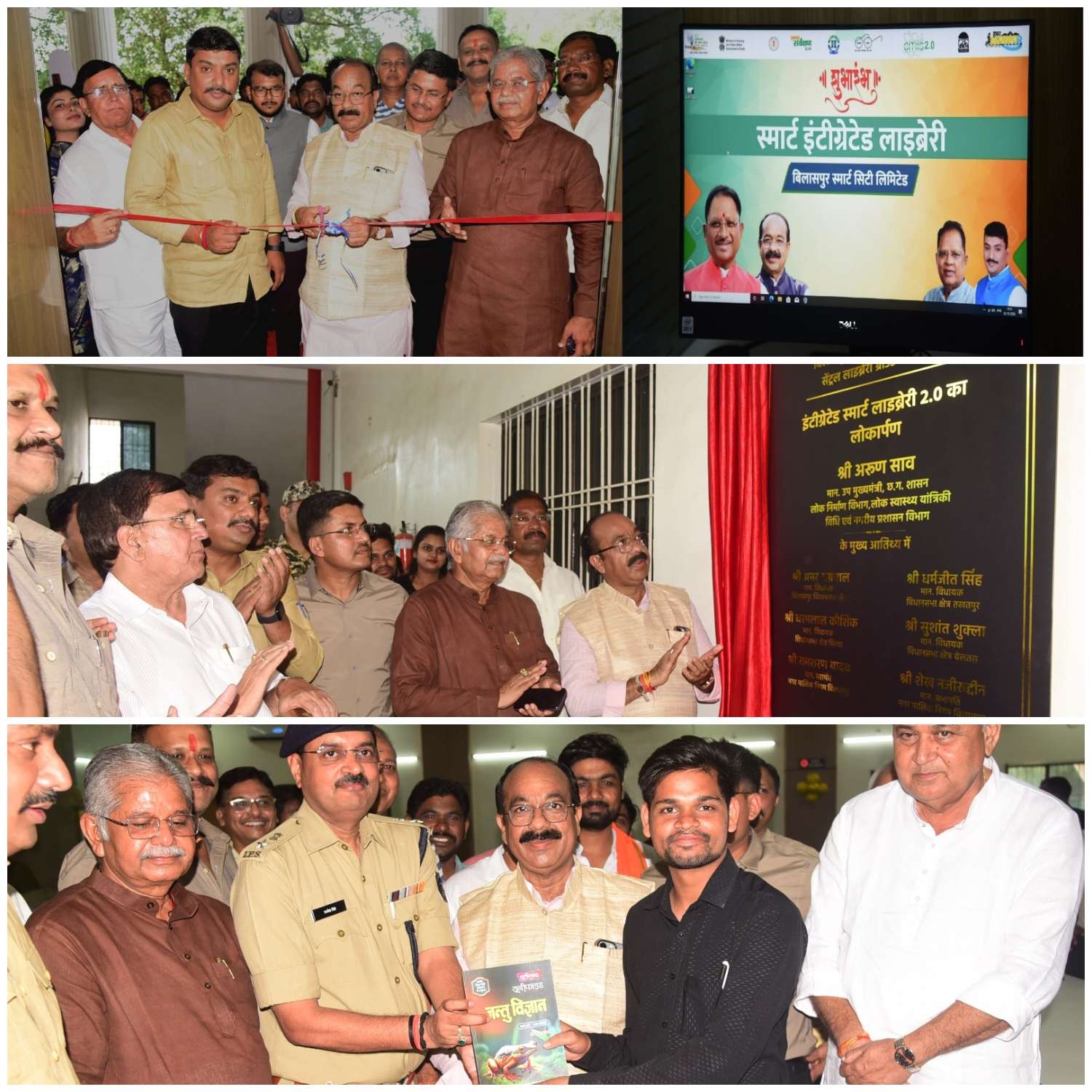 बिलासपुर :— उप मुख्यमंत्री अरुण साव ने सेंट्रल लाइब्रेरी के फेस 2 स्मार्ट इंटीग्रेटेड लाइब्रेरी एवं कैंटीन सुविधा का लोकार्पण किया। डिजिटल लाइब्रेरी 2.0 में पाठकों को पुस्तकालय में उपलब्ध सभी किताबों का डिजिटल संस्करण मिलेगा, साथ ही पोर्टल के जरिए किताब जारी करने और वापस करने की भी सुविधा मिलेगी। पंडित शिवदुलारे मिश्र केंद्रीय पुस्तकालय में डिजिटल लाइब्रेरी 2.0 का शुभारंभ उपमुख्यमंत्री अरुण साव ने किया। इस अवसर पर बिल्हा विधायक धरमजीत कौशिक, तखतपुर विधायक धर्मजीत सिंह, बेलतरा विधायक सुशांत शुक्ला, कलेक्टर अवनीश शरण, एसपी रजनेश सिंह एवं निगम कमिश्नर अमित कुमार, प्रकाश निर्मलकर मौजूद रहे।
