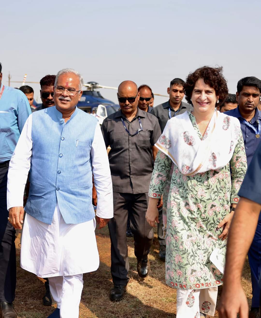 प्रियंका गांधी की विशाल और ऐतिहासिक महासभा में प्रदेश के मुखिया भूपेश बघेल ने भी शिरकत की। उन्होंने भी विश्वास जताया कि पांच सालो तक उनकी सरकार ने छत्तीसगढ़ की उन्नति और प्रगति के लिए काम किया है। उनकी सरकार में जहां ग्रामीण जनजीवन में सुधार आया है तो गरीबी भी कम हुई है। छत्तीसगढ़ के परम्परा को संवारने में छत्तीसगढ़ की सरकार कभी पीछे नहीं रही है। सीएम ने कहा कि गौठान, गोधन योजना और रीपा जैसी अनोखी योजनाओं से ग्रामीण अर्थव्यवस्था में क्रांतिकारी परिवर्तन आया है। बेरोजगारों को रोजगार भत्ता हो या फिर शहरो में अधोसंरचना का विकास सभी दिशा में उनकी सरकर ने कार्य किया है। उन्हें पूरी उम्मीद है कि इस बार बेलतरा में भी कांग्रेस की भारी मतों से जीत होगी जबकि बिलासपुर जिले की सभी सीटों पर कांग्रेस वापसी करेगी।