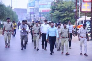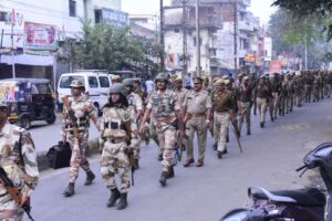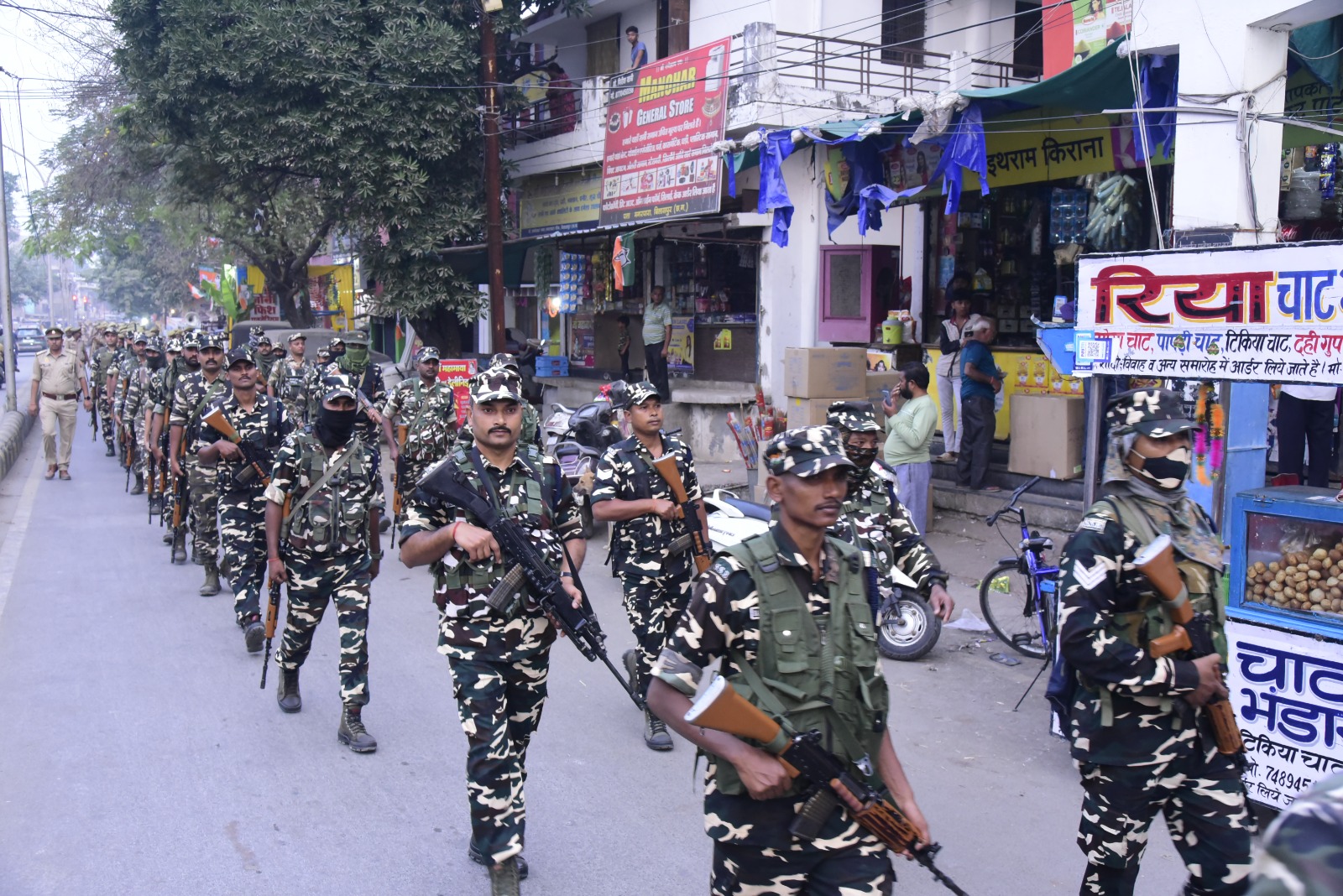 करीब साढ़े चार किलोमीटर का फ्लैग मार्च –