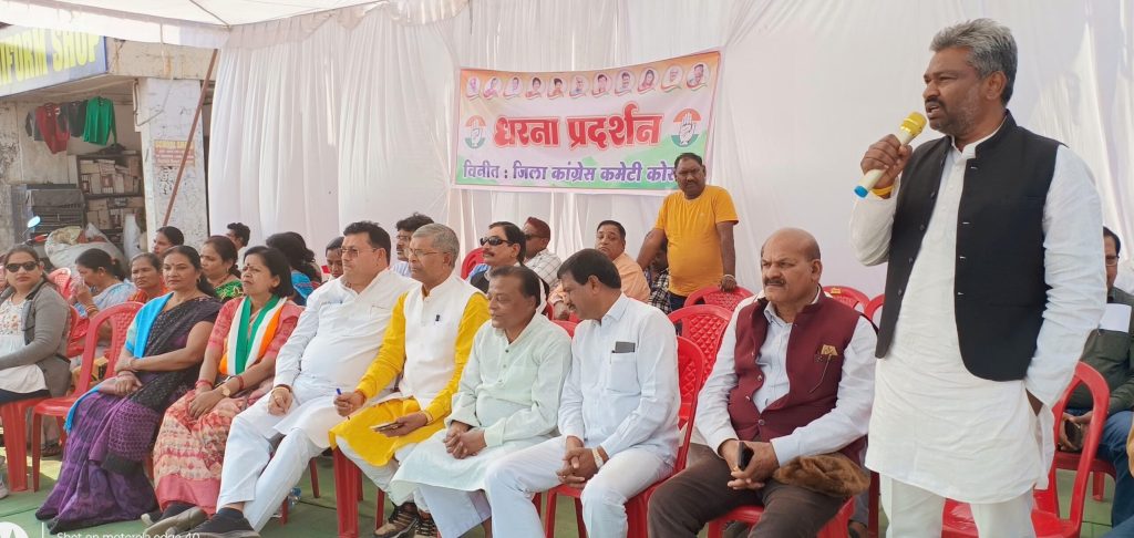 कोरबा • प्रदेश कांग्रेस कमेटी के निर्देश पर जिला कांग्रेस कमेटी द्वारा टीपी नगर चौक में एक दिवसीय धरना प्रदर्शन कर इंडिया गठबंधन के 146 सांसदों के निलंबन के फैसले के खिलाफ विरोध प्रदर्शन किया।
