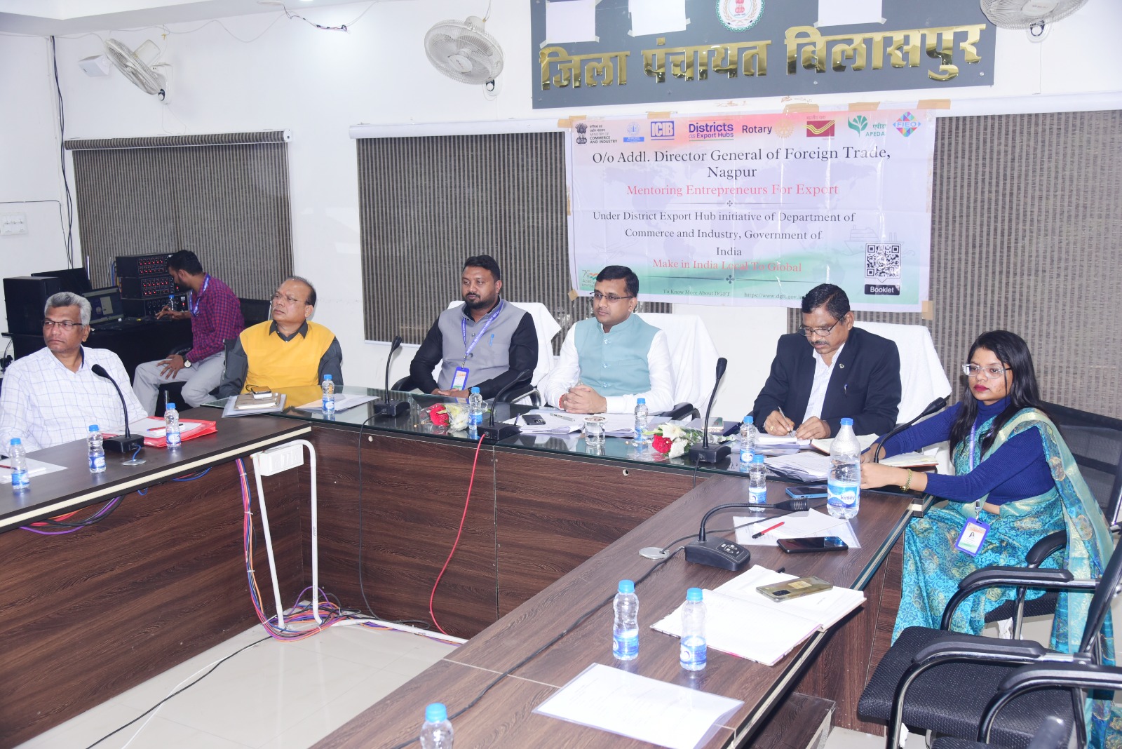 बिलासपुर // विदेश व्यापार महानिदेशालय (डीजीएफटी) नागपुर द्वारा बिलासपुर जिले में निर्यात को बढ़ावा देने और निर्यात केंद्र के रूप में विकसित करने के लिए जिला पंचायत के सभाकक्ष में एक दिवसीय कार्यशाला का आयोजन किया गया। कार्यशाला का आयोजन जिला प्रशासन और जिला व्यापार एवं उद्योग केंद्र के सहयोग से संपन्न हुआ। कार्यक्रम में प्रमुख रूप से सीईओ जिला पंचायत श्री अजय अग्रवाल, जिला व्यापार एवं उद्योग केंद्र महाप्रबंधक श्री एम एल कुसरे, बैंक ऑफ महाराष्ट्र के पदाधिकारी, इंडिया पोस्ट के अधिकारी, डीजीएफटी नागपुर के अधिकारी उपस्थित थे।