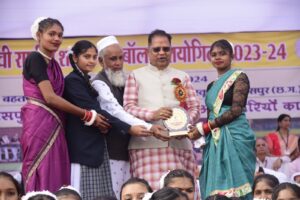 बिलासपुर • 67वीं राष्ट्रीय शालेय क्रीड़ा प्रतियोगिता (बेसबॉल) का स्व. बीआर यादव बहतराई स्टेडियम में शानदार आगाज हुआ। प्रतियोगिता का शुभारंभ बिलासपुर मुख्य अतिथि बिलासपुर विधायक श्री अमर अग्रवाल ने किया । कार्यक्रम में विशिष्ट अतिथि के तौर पर श्री महापौर रामशरण यादव, मस्तूरी विधायक श्री दिलीप लहरिया भी उपस्थित थे। कार्यक्रम में श्री रामदेव कुमावत, कमिश्नर केडी कुंजाम, कलेक्टर श्री अवनीश शरण और नगर निगम कमिश्नर श्री कुणाल दुदावत मौजूद थे।